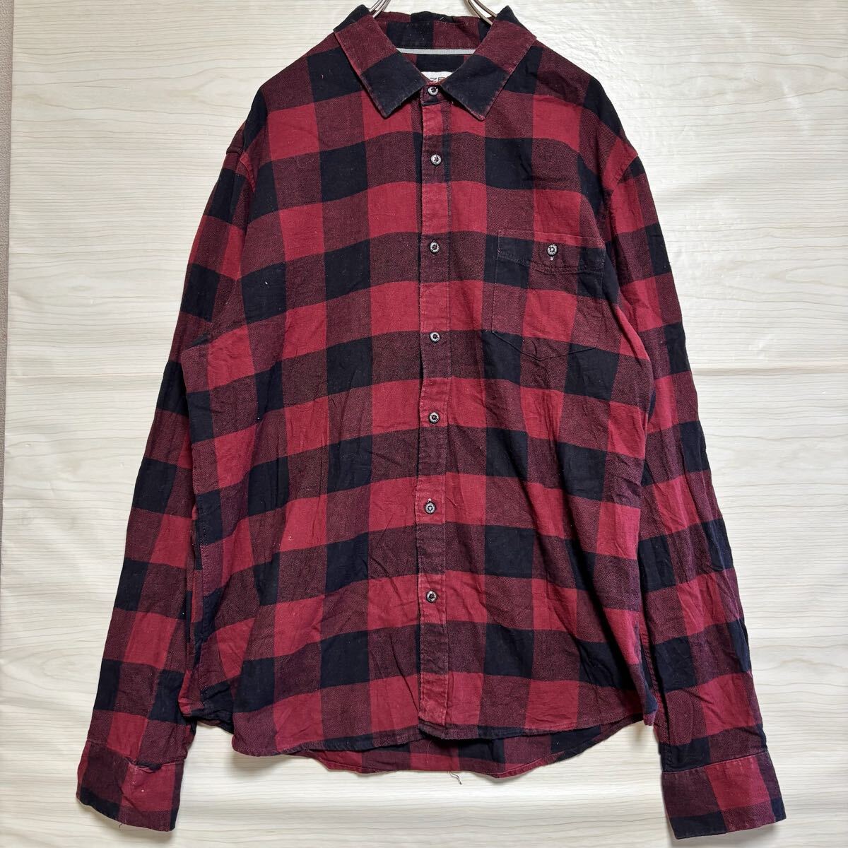 > NOIZE ノイズ 長袖シャツ フランネルシャツ 胸ポケット チェックシャツ サイズXL レッド 赤 コットン メンズ トップス(39)