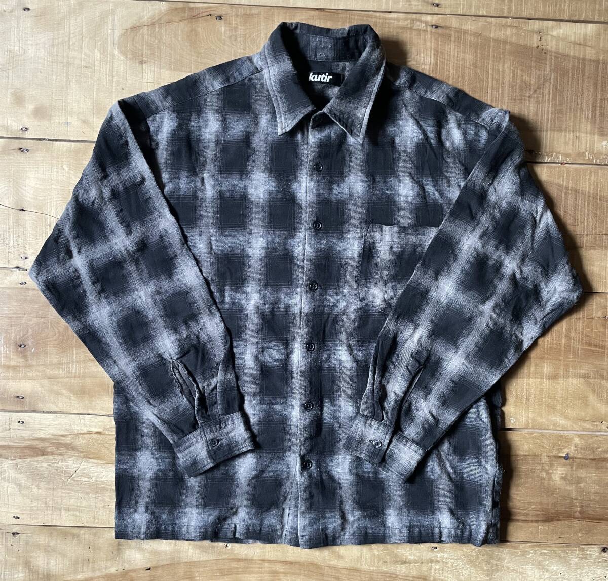 - kutir クティール シャツ 黒 グレー メンズ Lサイズ 古着 長袖