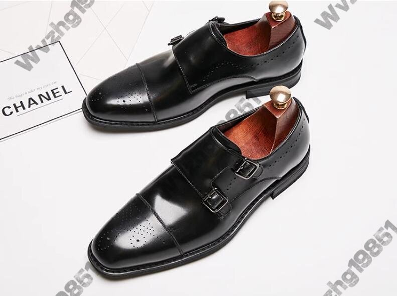 - 春の新作彫刻紳士靴ビジネスフォーマル革靴男英倫ブラックバックルオックスフォード靴