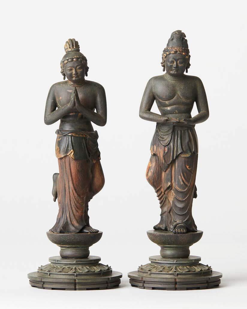 本体サイズ:◇観音菩薩:約175(H)×65(W)×65(D)mm 175g ◇勢至菩薩:約170(H)×65(W)×66(D)mm 175g 素材:ポリストーン