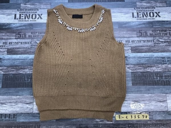 - CRYX レディース ビジュー付き ニットベスト 茶
