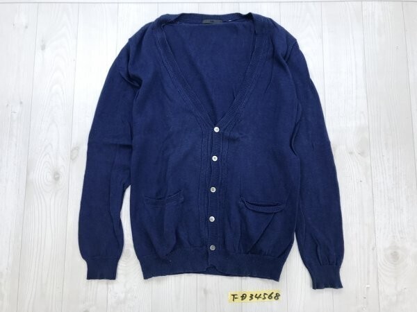 - HARE ハレ メンズ ニットカーディガン 麻混 ポケット付き S 青
