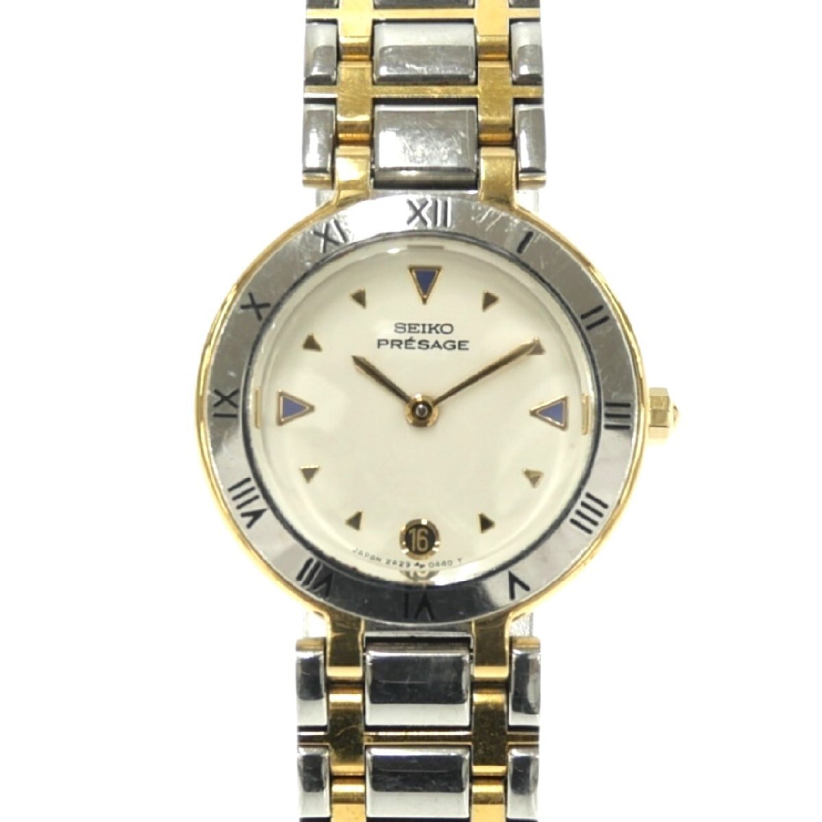 > 1円スタート 稼働品 SEIKO セイコー PRESAGE プレサージュ 2A29-0050 デイト クォーツ コンビ ホワイト文字盤 レディース 腕時計