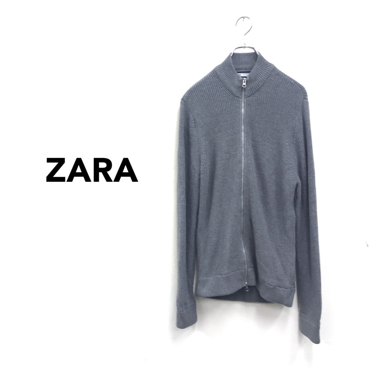 > 2O3266-G◆ ZARA ザラ ダブルジップニットジャケット ハイネック ミドルゲージ 無地 ロングスリーブ ユニセックス ◆ sizeM グレー