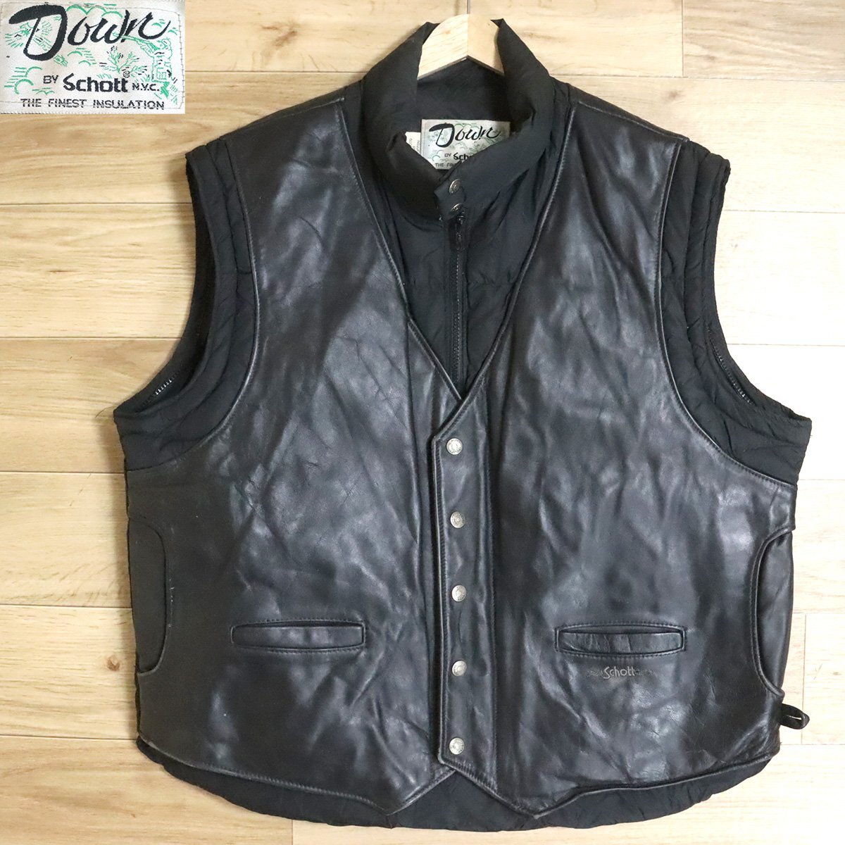 - N7T/D10.16-2 米国製 SCHOTT ショット レザーダウンベスト 本革 48 レザーベスト 革ベスト 皮ベスト グースダウン