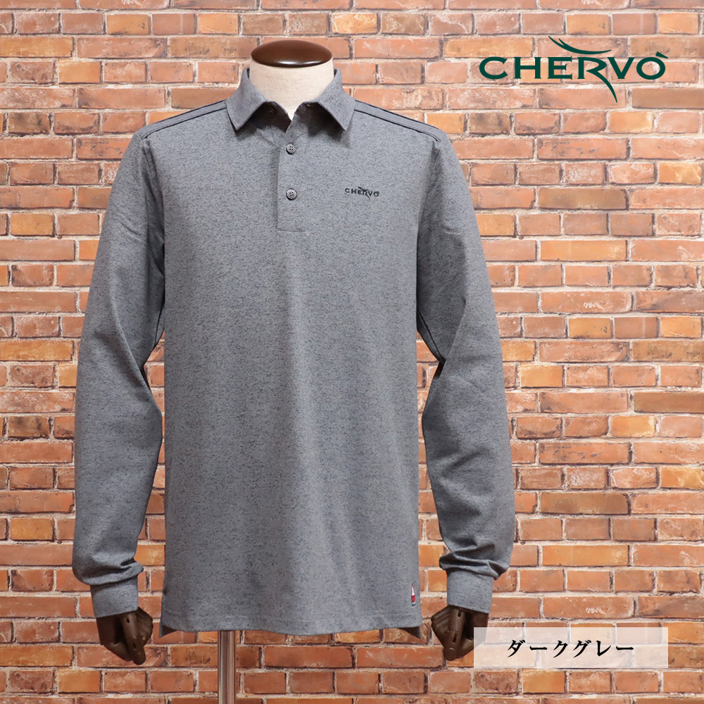 - 1円/CHERVO/50サイズ/長袖ポロシャツ ABDUL 快適ストレッチ 速乾 メランジ シンプル ゴルフ シェルボ 新品/ダークグレー/md127/