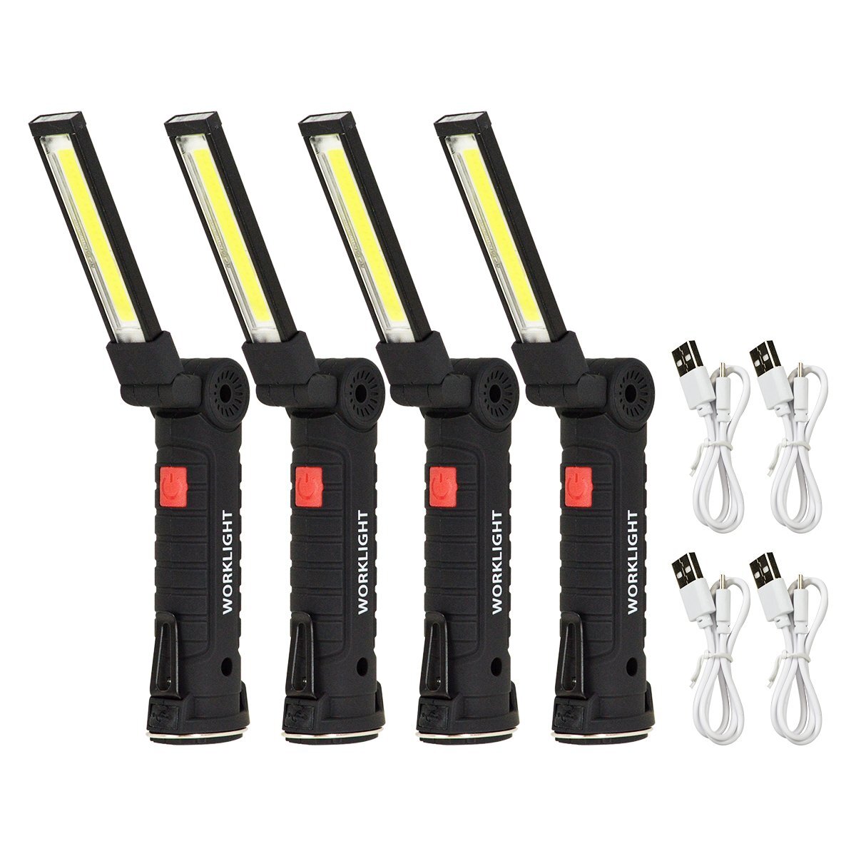 - 【新品即納】4個セット LEDライト COB LED 作業灯 防水 360度 回転 折畳み式 USB 充電式 懐中電灯 マグネット 多機能 ワークライト