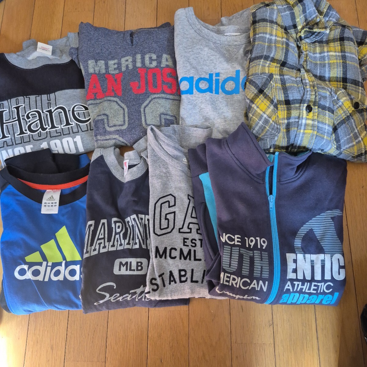 > 160 男の子 秋冬まとめ売り 8枚セット ロンT パーカー トレーナー ジャンパー GAP アディダス チャンピオン Hanes マリナーズ