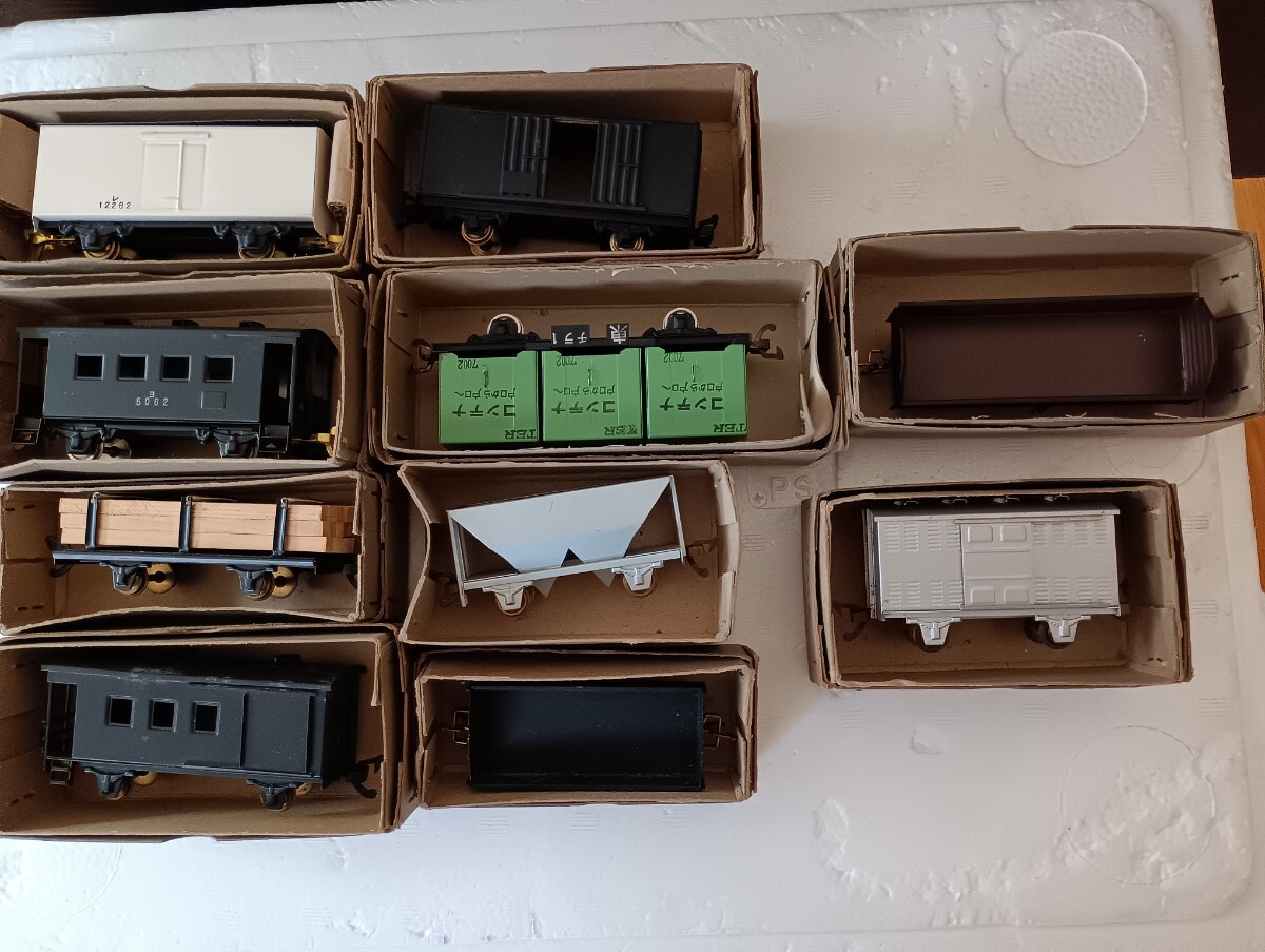 - メーカー不明の金属製貨車10両。本体及び箱付き、