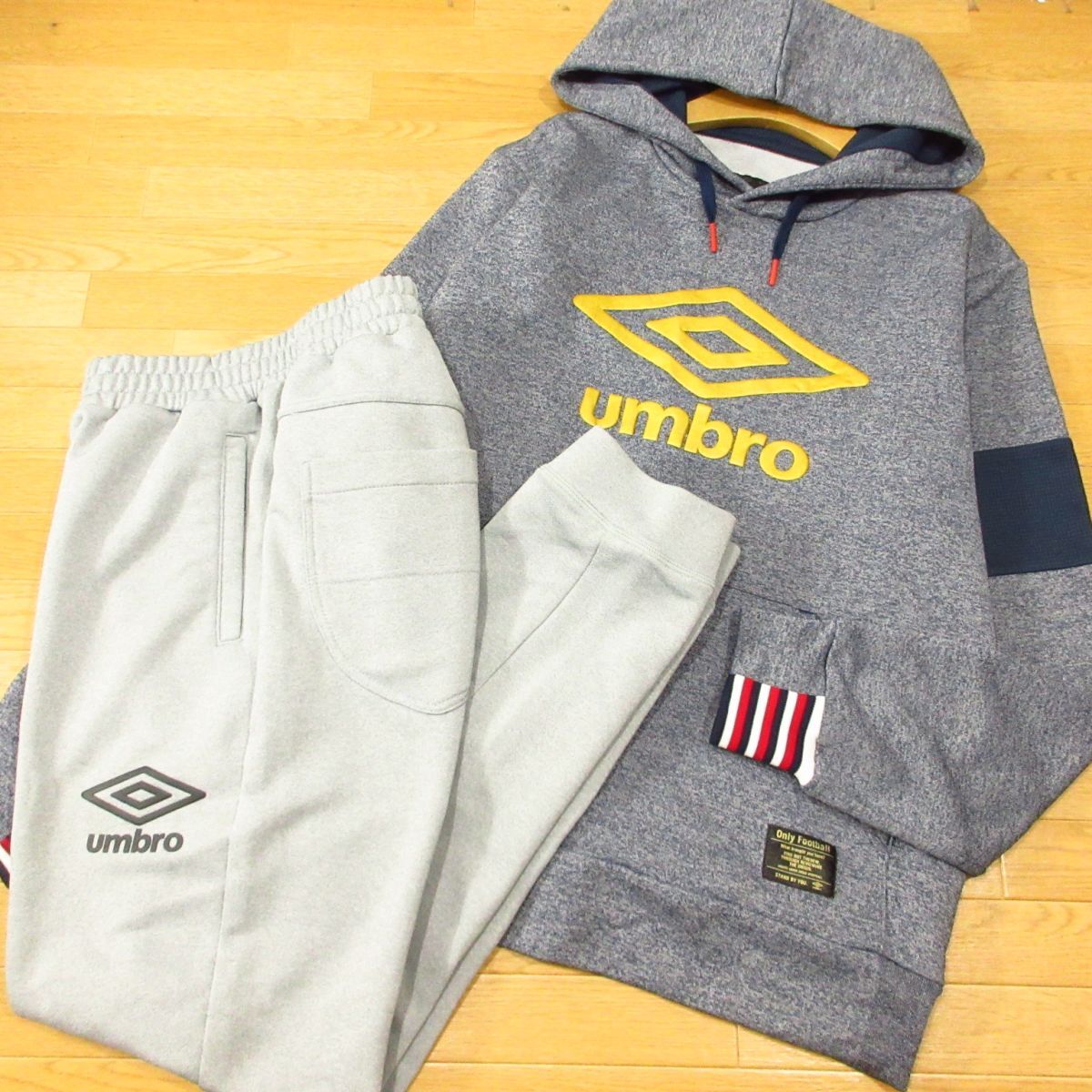 > ◎美品!UMBRO アンブロ M-L 上下セット スウェット パーカー&ジョガーパンツ メンズ 紺xグレー◆BA3855