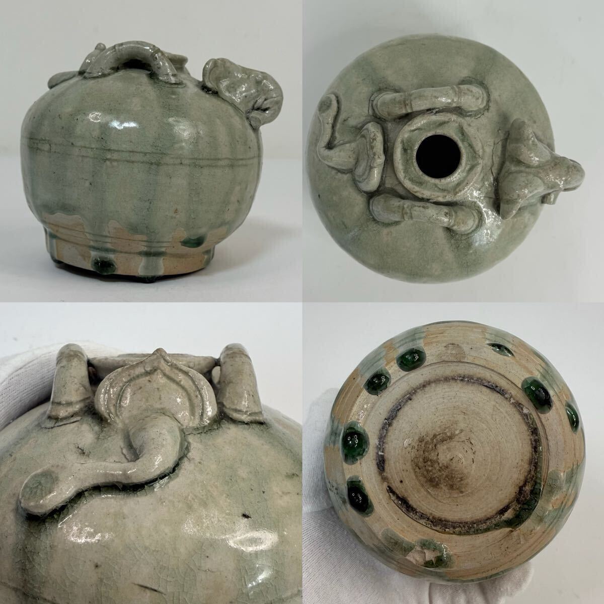 - XMF-中国古美術 時代物 青磁 花瓶 花器 壺?象図 唐物 陶磁器 中国古玩 骨董品