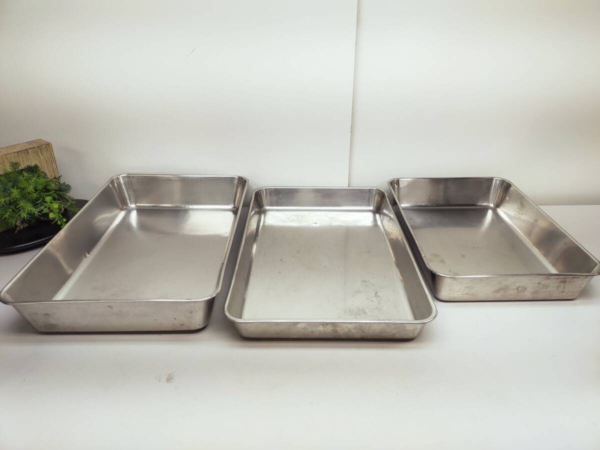 - 業務用ステンレス深型バット 3点セット サイズ 57x36x9cm 58x36x6cm 47x33x8cm クローバー製 A9777B12