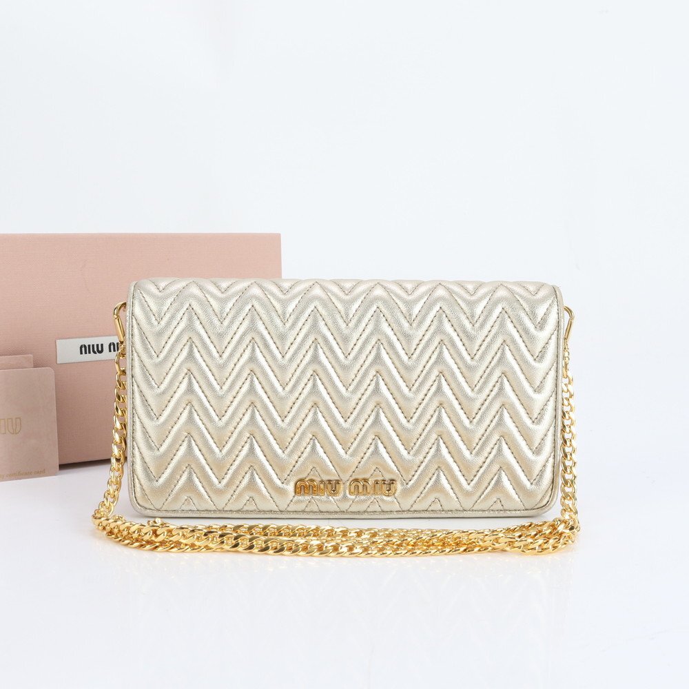 - 1円■極美品■ミュウミュウ■ギャランティカード付■マテラッセ レザー ショルダー ウォレット 長財布 5DH044 レディース ECE CX39-10