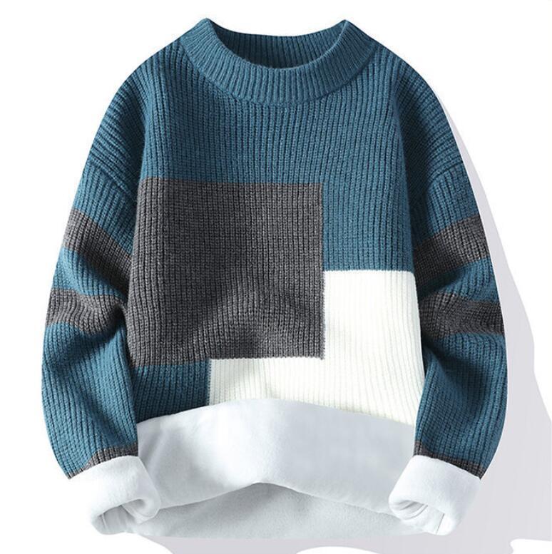 - 新入荷イタリア製造 ニットセーター カシミヤウール混 メンズ プルオーバー 編み トップス ラウンドネック 厚手 SIZE:L