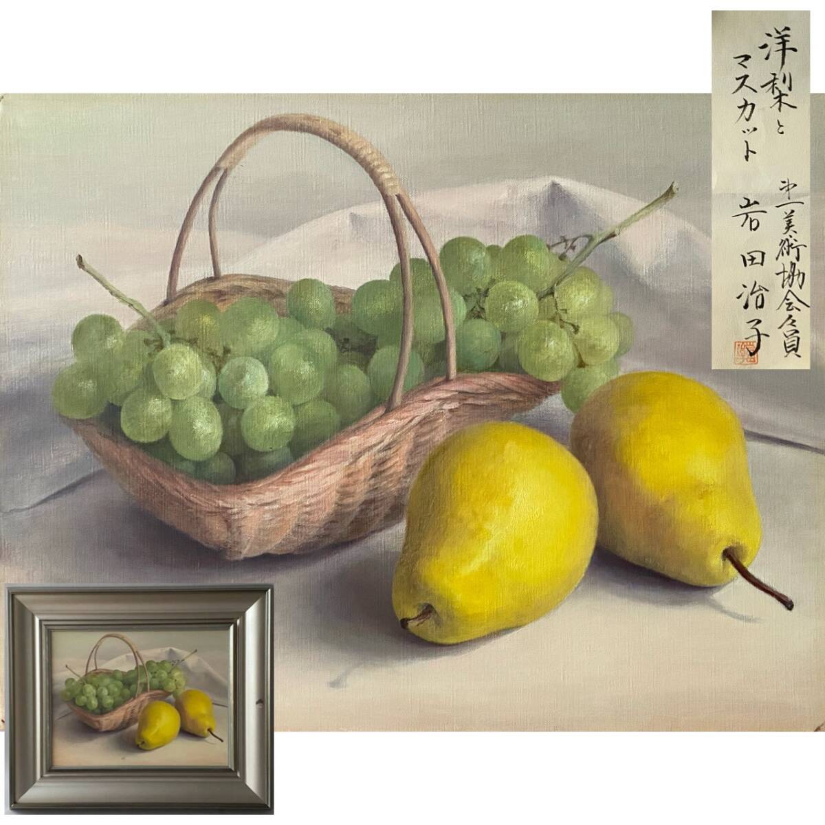 > 第一美術協会 岩田治子 「洋梨とマスカット」 油彩F6号 裏書 額装 タトウ 検) 函館市出身 道立函館美術館 収蔵作家 第一美術評議員 静物画