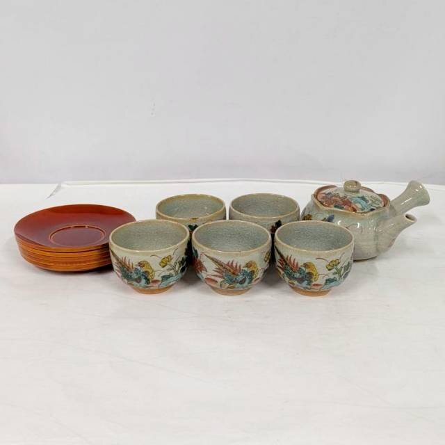 - 九谷光山 急須&湯呑5客セット 食器 和柄 鳥 花 九谷焼 工芸品 焼物 キッチン用品 テーブルウエア おまけ小皿付き