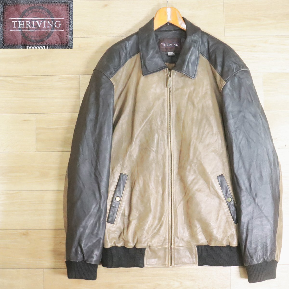 > =4O/Y5.9-1 アメリカ古着 THRIVING レザースタジャン 本革 アワードジャケット バーシティジャケット 革ジャン 皮ジャン XL位