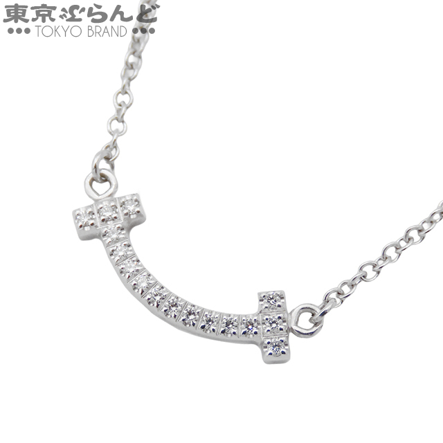> 101823985 ティファニー TIFFANY&Co. T スマイル ペンダント ホワイトゴールド K18WG ダイヤモンド ミニ ネックレス レディース 仕上済