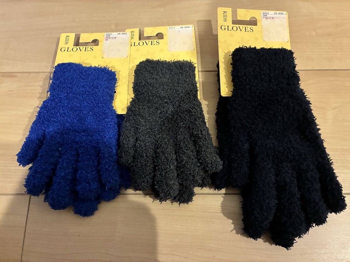 - キッズ用フリース手袋 3色セット 16cm 20cm記載 あったかもこもこ手袋