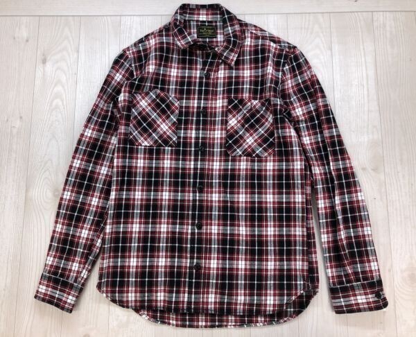 > The LA Mart ザ エルエーマート アメカジ ストリート ヴィンテージライク チェック 長袖シャツ メンズ 両胸ポケット 綿100% L 赤 黒