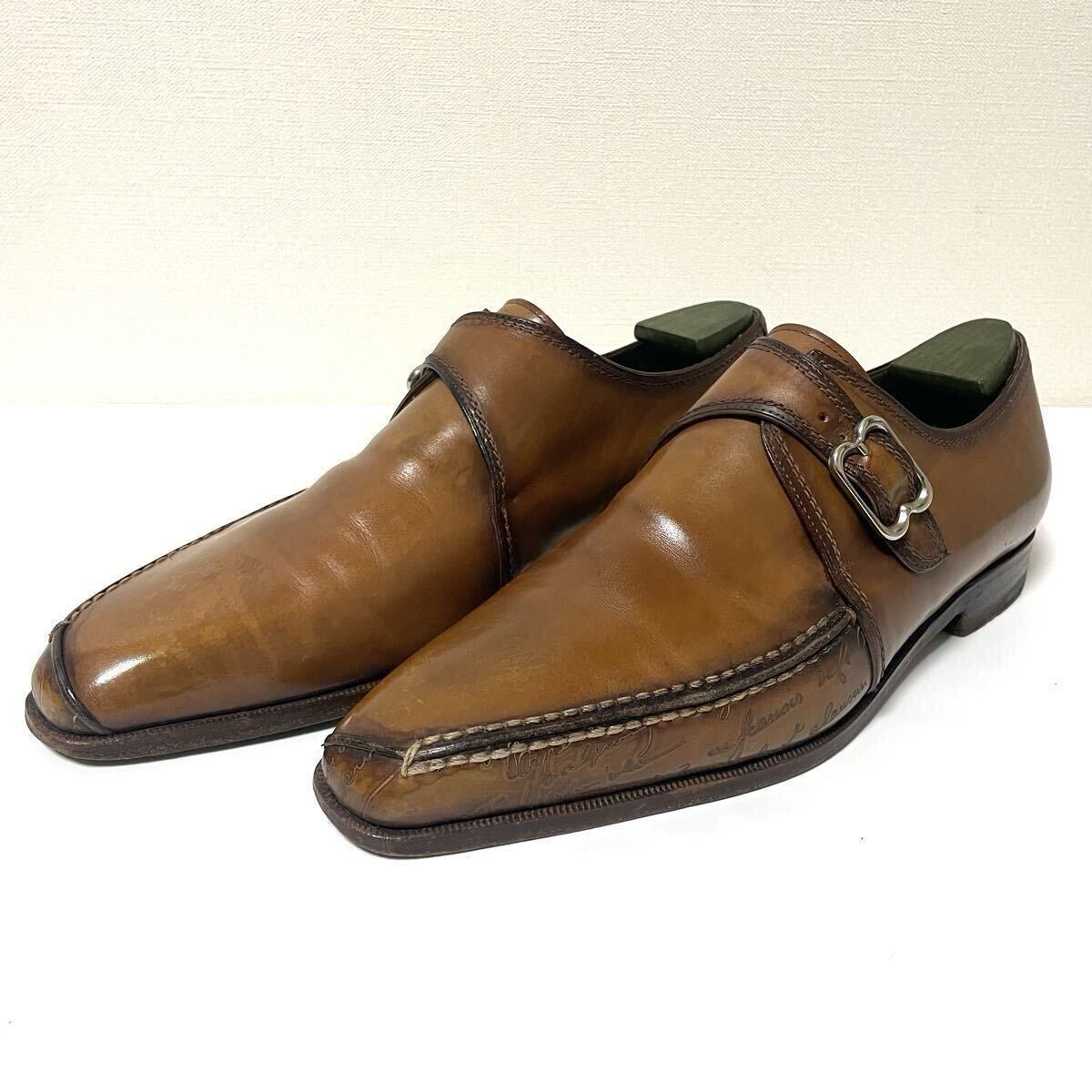 - ベルルッティ デムジュール スカーズ カリグラフィ モンクストラップ レザーシューズ ブラウン モスグリーン