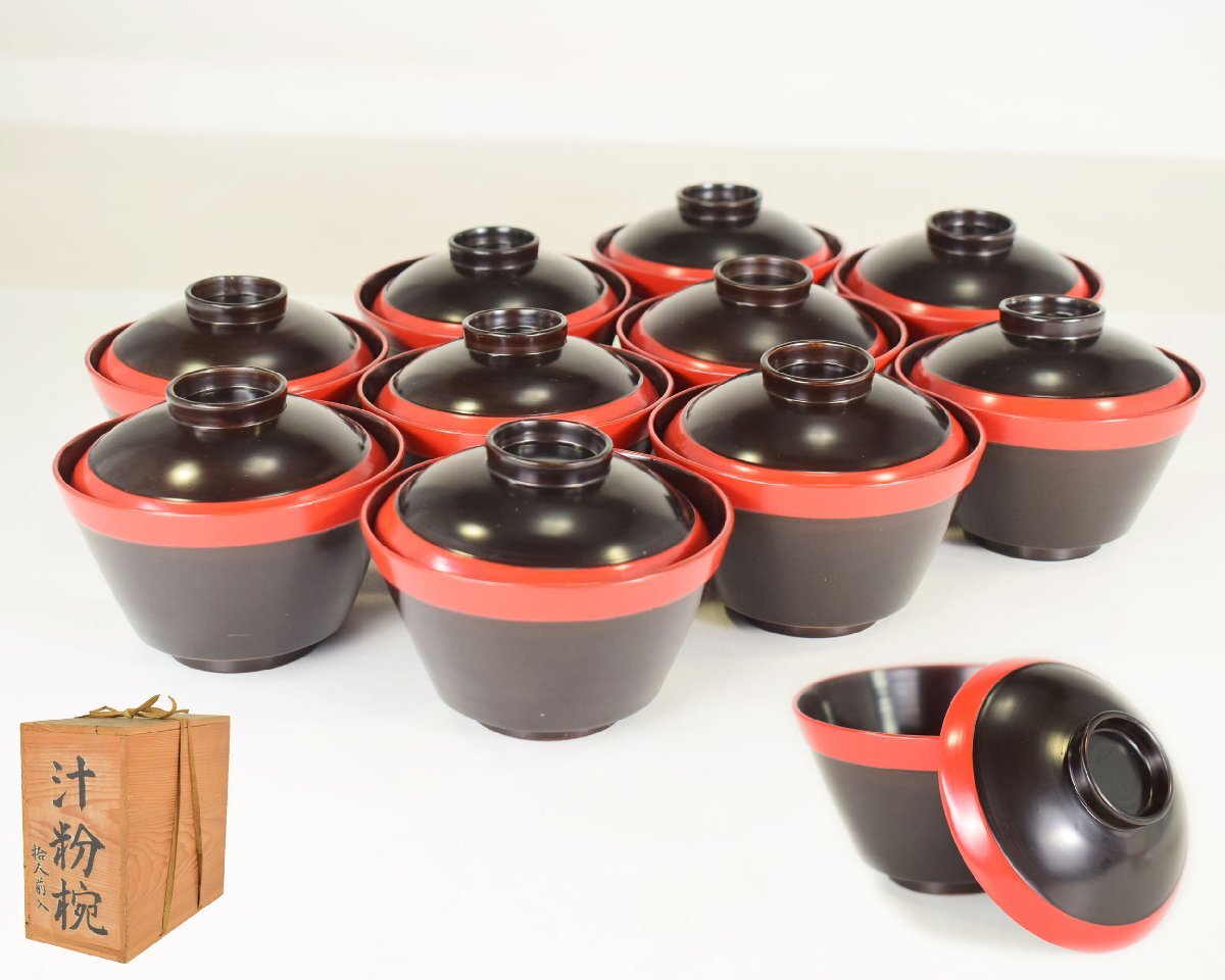 U857 【泉美】漆芸 汁物椀 煮物椀 10客 懐石道具 共箱入