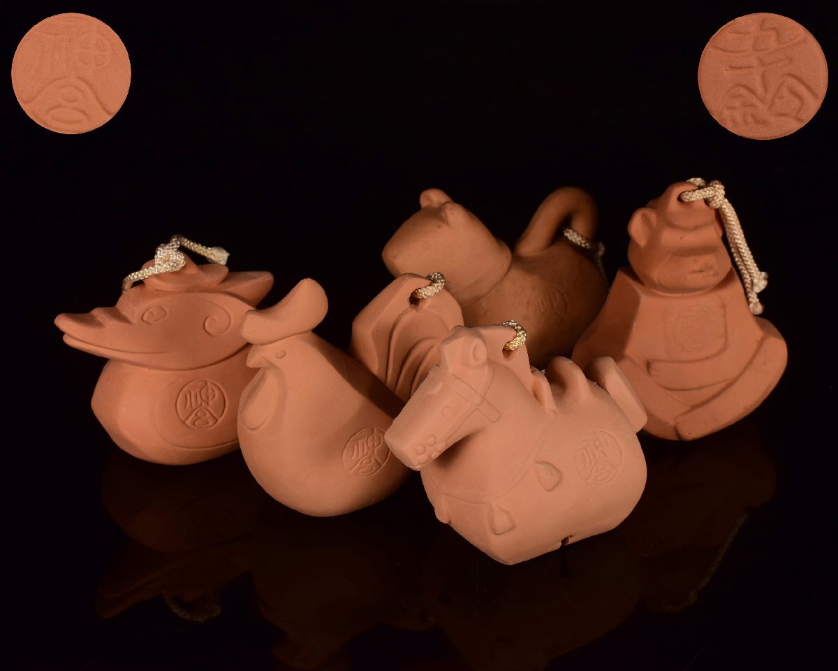 X243 【泉美】郷土玩具 戌 酉 辰 午 申 時代 干支 五十鈴 神宮 神鈴 土鈴 鈴 魔除け 神社 置物 オブジェ 飾り ストラップ 5点拍卖