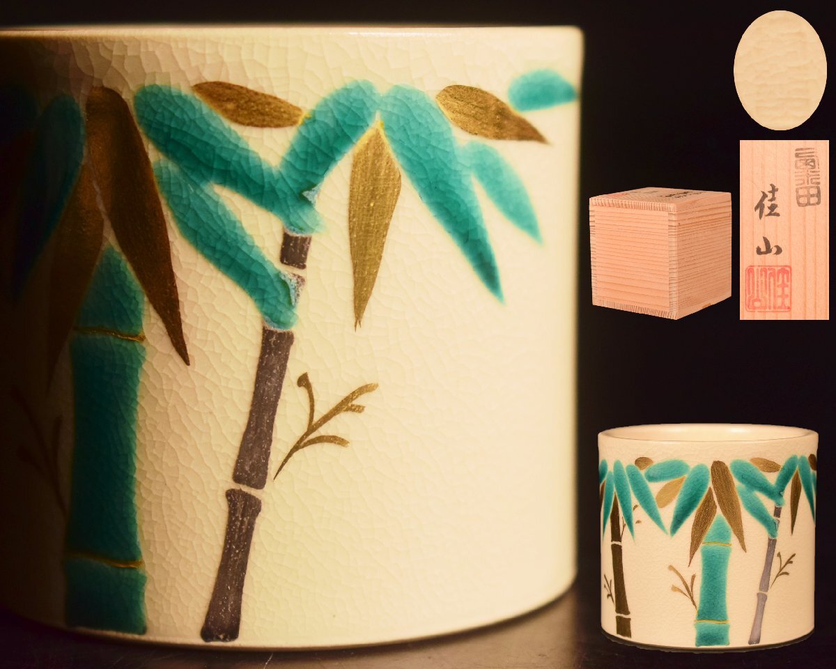 Z140 【泉美】桂山作 色絵竹之図 蓋置 茶道具 共箱入拍卖