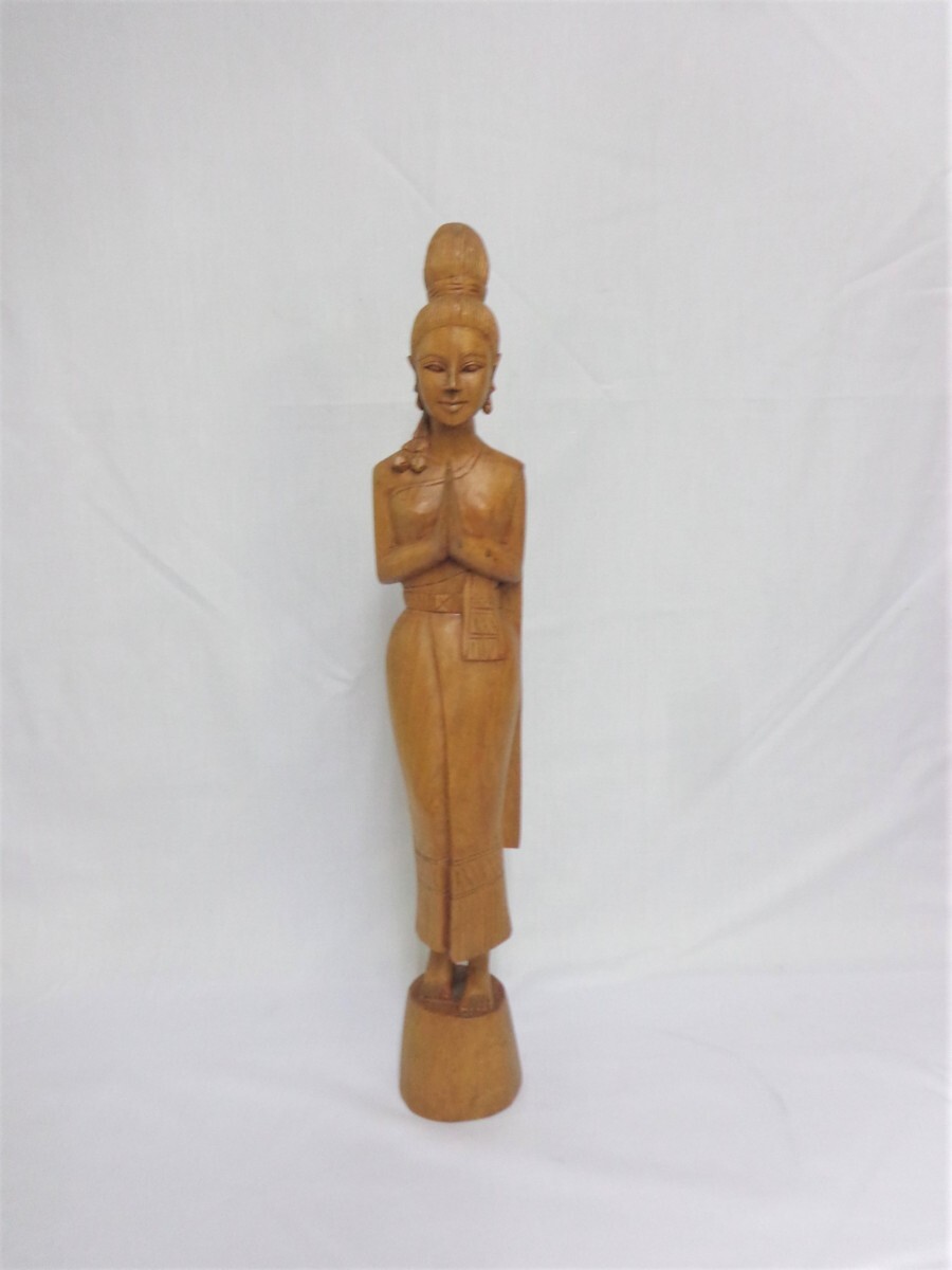 ▽木彫り アジアン女性像 全高51cm 置物 インテリア エスニック 中古▽001245