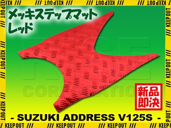 - アルミ調 ステップマット スズキ アドレスV125S/ベーシック/リミテッド レッド メッキ バイク ゴムマット ステップボード カスタム