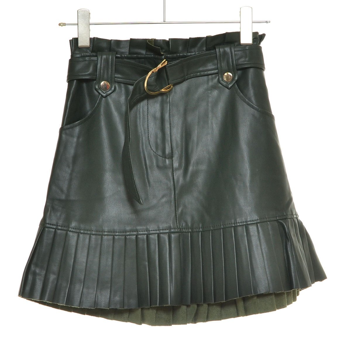 > ◇567103 ZARA ザラ ◇ミニスカート PUレザー ヘムプリーツスカート サイズXS レディース グリーン