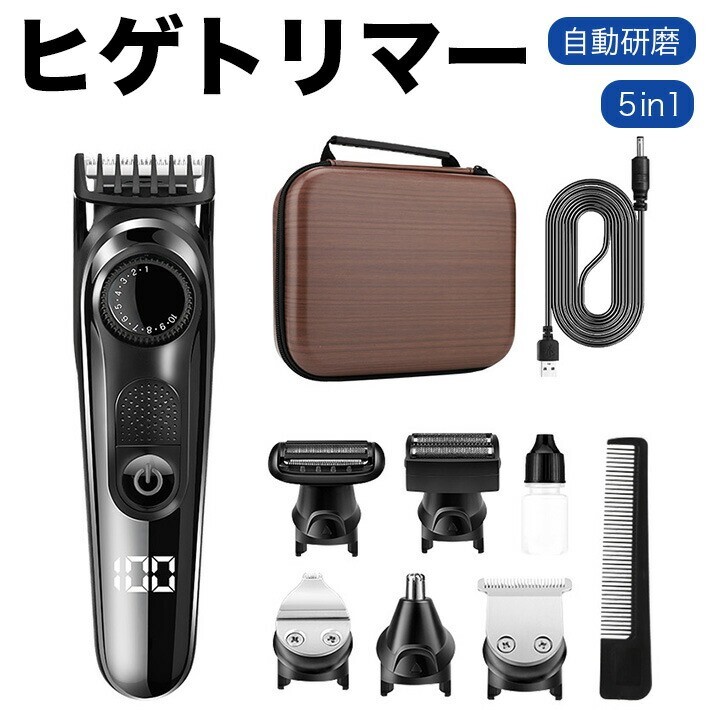 - 5in1 ヒゲトリマー シェーバー バリカン メンズ 髭剃り 調整幅 10段階長さ調節