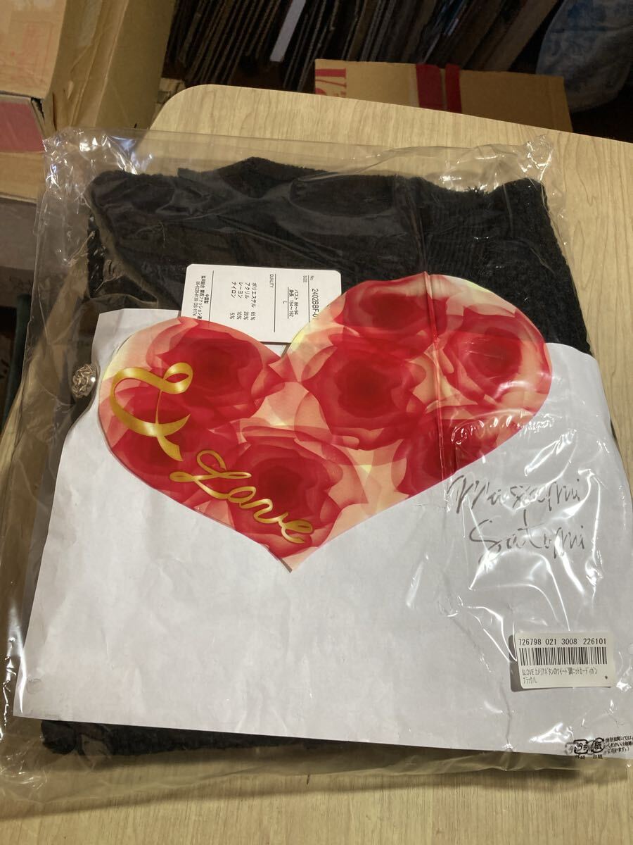 > 【服飾】 アンド ラブ &Love カメリアボタンのツィード調 ニット カーディガン 黒 ブラック L サイズ 新品 未開封 衣類 服