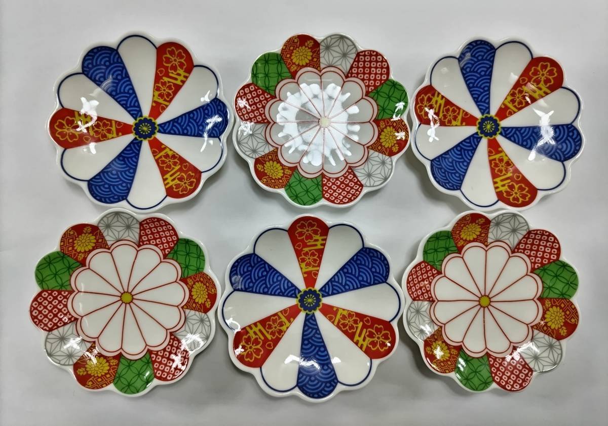 - 攝龜【美品】豆皿 6枚セット 小皿 醤油皿 銘々皿 食器 和風 レトロ 日本 陶器 焼き物 皿 彩り こどもの日 節句 縁起物 行事 カラフル 青 緑