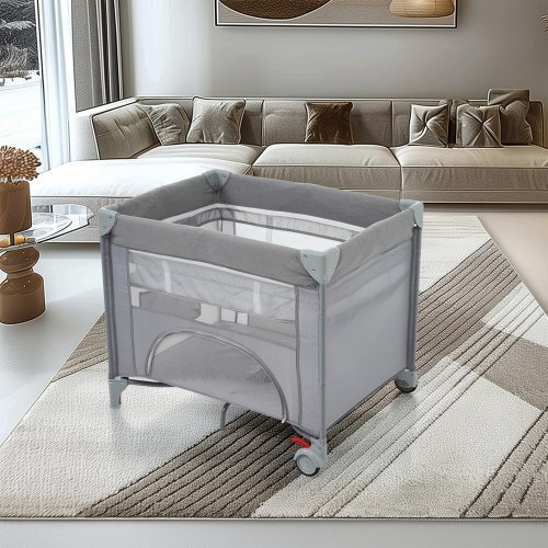 - プレイヤード 折りたたみ ベビーサークル お昼寝マット キャリーバッグ付 マットレス付 プレゼント お誕生日 お祝い【グレー】