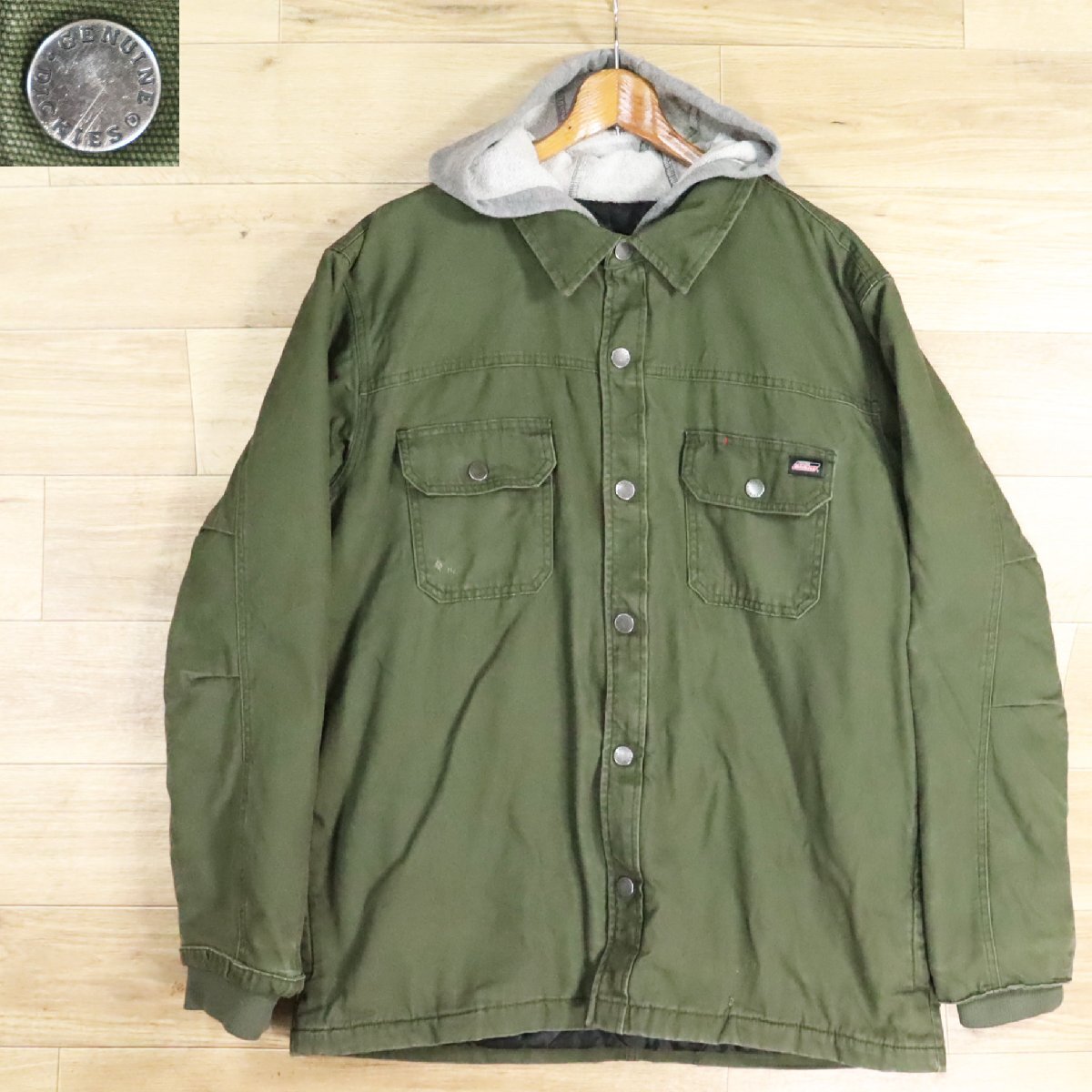 > I9S/D7.16-1 Dickies ディッキーズ フード付き ワークシャツジャケット レイヤード パーカー 中綿ジャケット カーキ系 古着