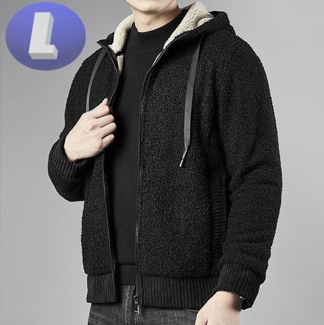 - もこもこパーカー ブラック Lサイズ 裏起毛 アウター 暖か 防寒 n706