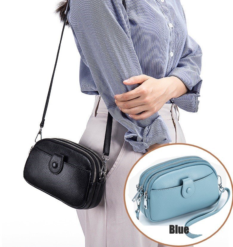 - ショルダーバッグ 牛皮 ブルー レザー シンプル 小物 スマホ カード 鍵 たばこ など n529