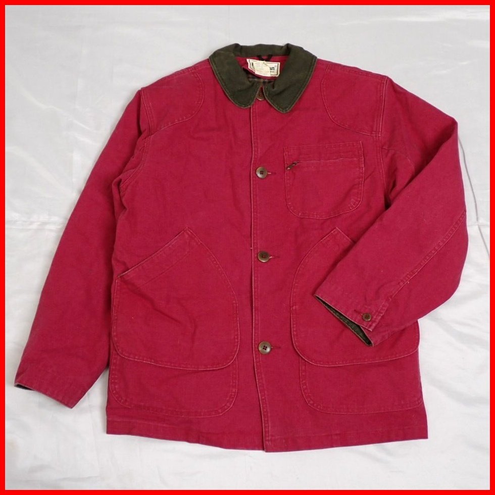 > ★L.L.Bean/エルエルビーン ライナー付き ハンティングジャケット S/メンズM相当/レッド系/コットン100%/丸襟/チェック柄&2114900008