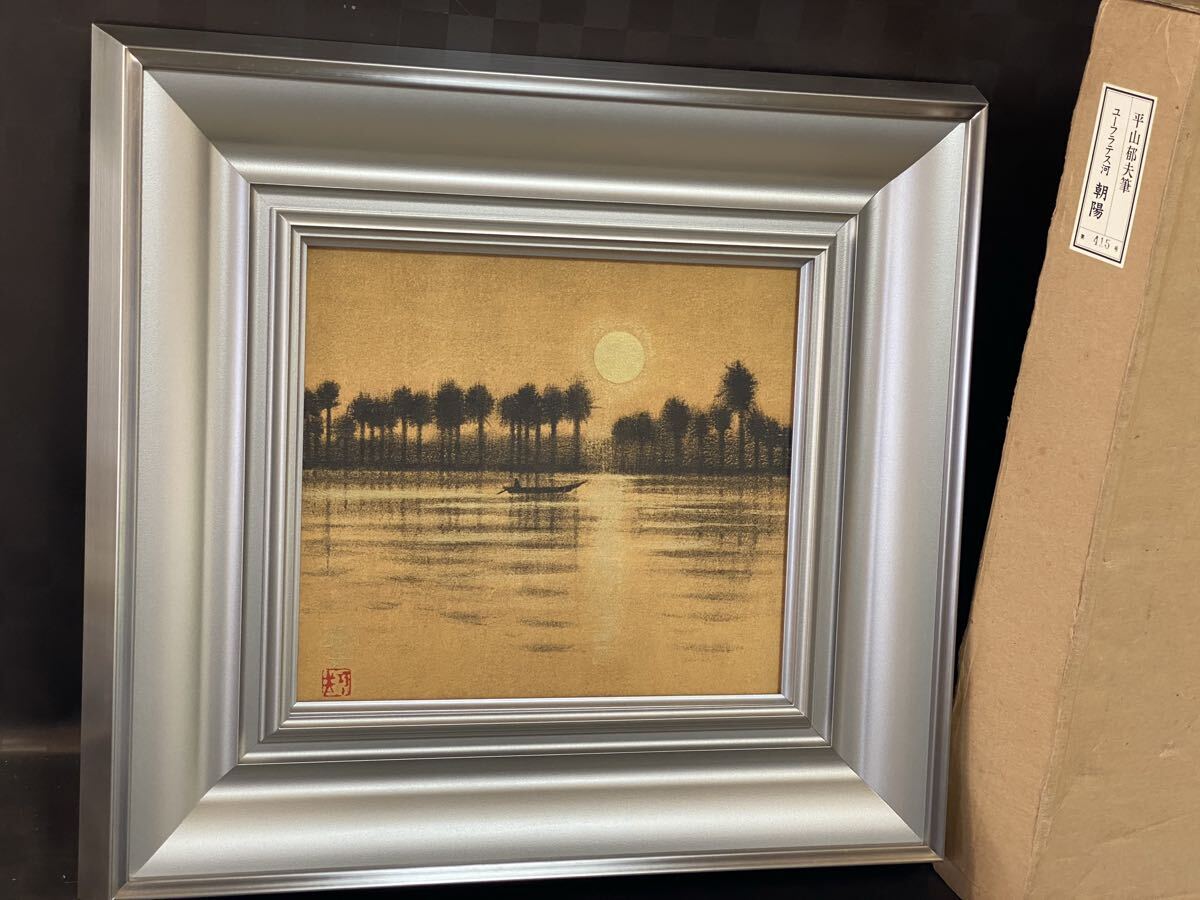 - 真作 工芸画 美術印刷複製画 岩絵具/胡粉/砂絵仕上 平山郁夫 【ユーフラテス河 朝陽】 額縁 額縁 インテリア 風景画 共シール