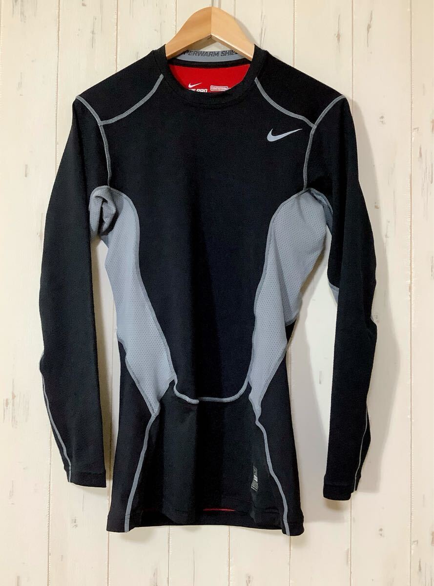 > て1775 NIKE PRO COMBAT ナイキ 長袖コンプレッションシャツ 長袖インナーシャツ XXL ブラック/グレー ロゴプリント DRI-FIT