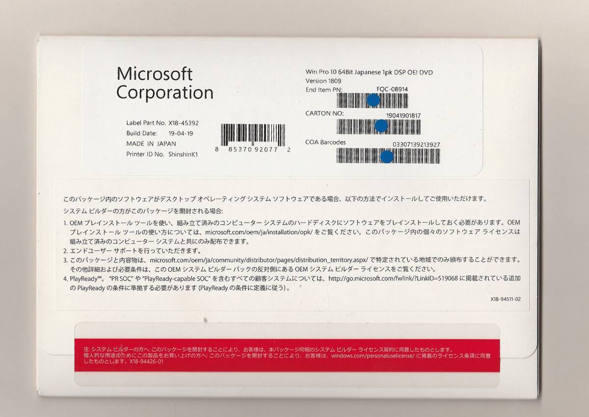 - 希少/新品●Windows 10 Pro 64bit●新規インスト