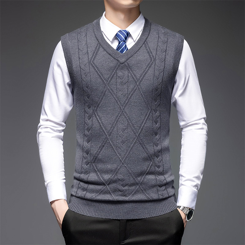 - 新品★ベスト メンズ Vネック ニットベスト ビジネス ウール混 セーターベスト ケーブル編み 紳士服 防寒 軽量 伸縮性 通勤 通学 グレー2XL