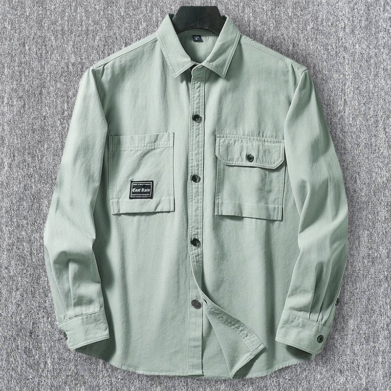 - 欧米スタイル 国内未販売 新品 メンズ長袖シャツ カーゴ ポケット ウォッシュドコットン 春秋 ゆったり 日常 カジュアル/緑色T6023-3XL