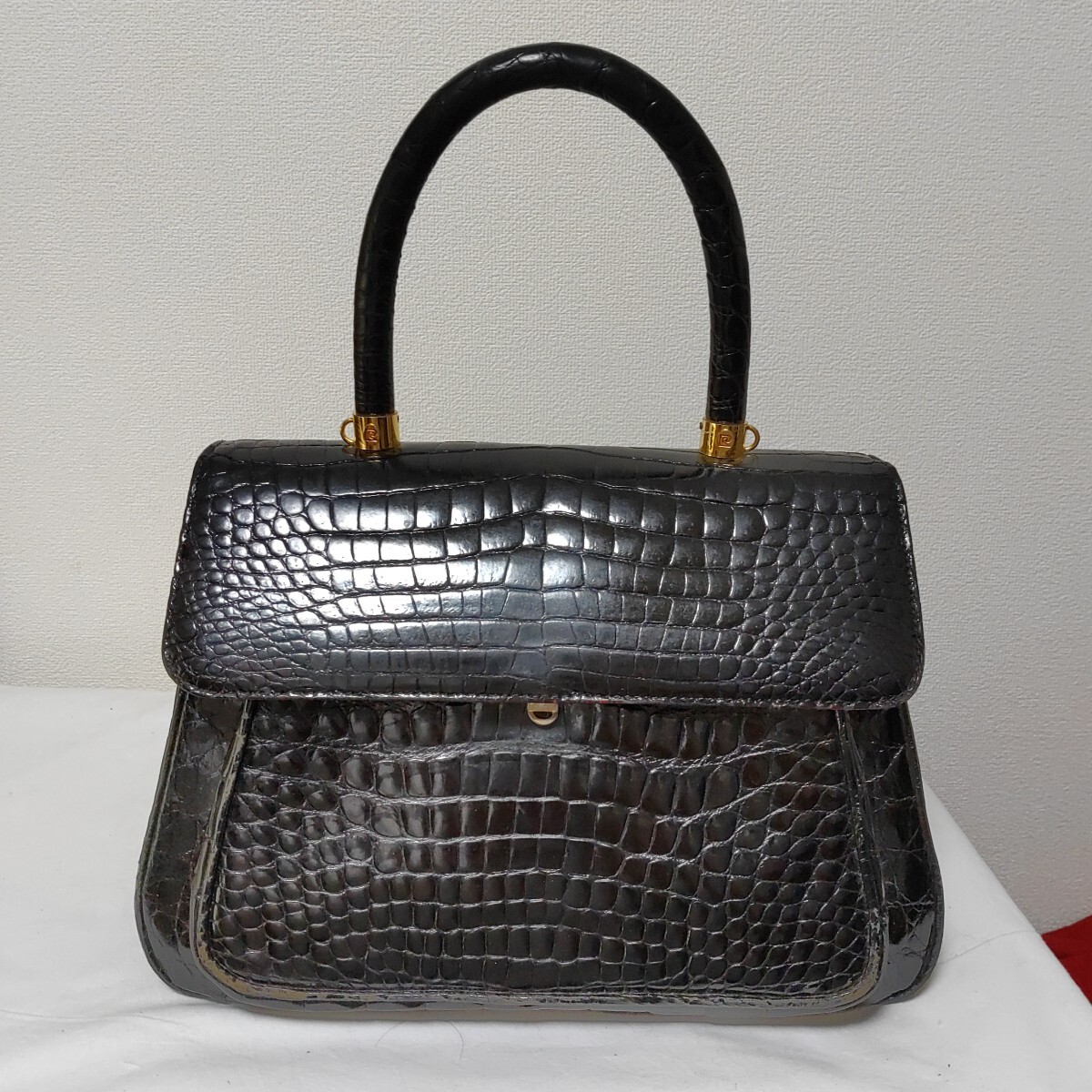 - pierre cardin ピエールカルダン ハンドバッグ クロコダイル? 黒 ゴールド 難あり 1105-H4-TA7