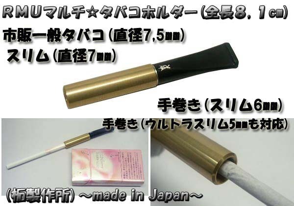 《< 新品 日本製 柘製作所 RMU(ROLL ME UP)マルチタバコ用ホルダー(直径75mm-50mm対応)全長(8,1cm)ゴールド >》