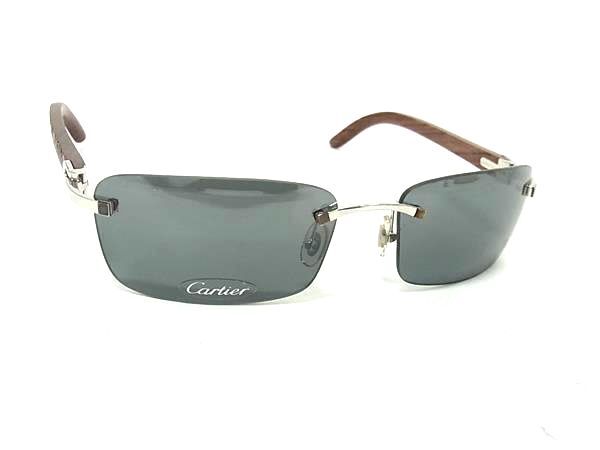 > 1円 ■希少■新品同様■ Cartier カルティエ ウッドテンプル サングラス メガネ 眼鏡 メンズ ブラウン系 FU4148