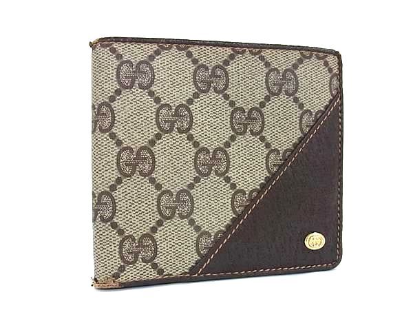 > GUCCI グッチ 01 03 411 オールドグッチ ヴィンテージ PVC×レザー 二つ折り 財布 ウォレット 札入れ 小銭入れ ブラウン系 DK7654