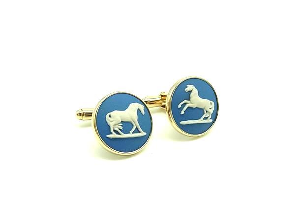 > ■美品■ WEDGWOOD ウェッジウッド ジャスパー 馬 カフスボタン カフリンクス アクセサリー 紳士 ビジネス メンズ ブルー系 DK5196