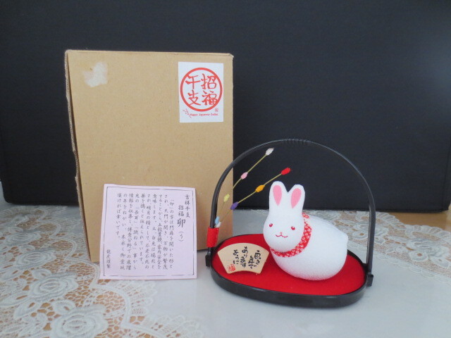 - 龍虎謹製・吉祥干支・ 笑福・兎 うさぎ・飾り・置物